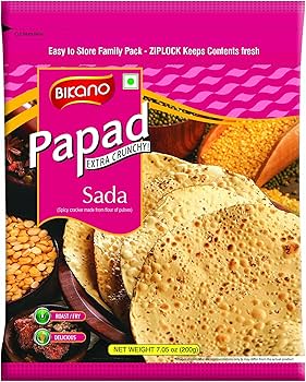 Bikano Plain Papad is a light and crispy traditional snack made for everyday meals and special occasions. With its mild, classic taste, it pairs perfectly with dal, rice, curries, or can be enjoyed on its own as a crunchy snack. Easy to roast or fry, it becomes crisp within seconds and adds texture to any meal. Ideal for lunch, dinner, tea time, or family gatherings, this papad suits all age groups. Carefully packed to maintain freshness, it delivers consistent crunch and quality every time